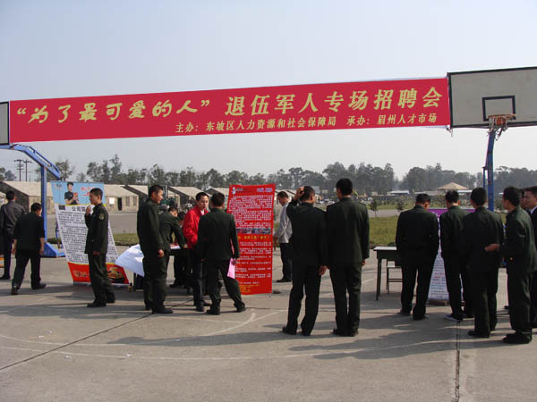 2010年12月上旬,東坡區(qū)人力資源和社會保障局為駐眉某部隊的退伍軍人舉辦專場招聘會。