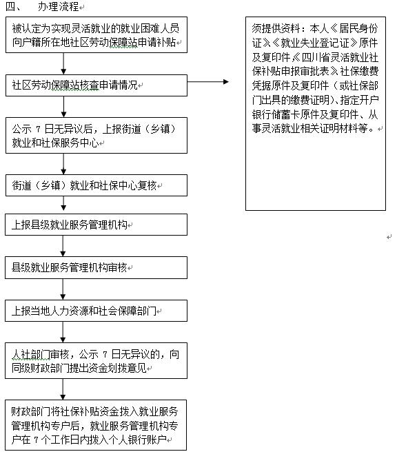 受理通過(guò)靈活就業(yè)方式實(shí)現(xiàn)就業(yè)的就業(yè)困難人員申報(bào)社保補(bǔ)貼資料,審核、撥付靈活就業(yè)社保補(bǔ)貼。